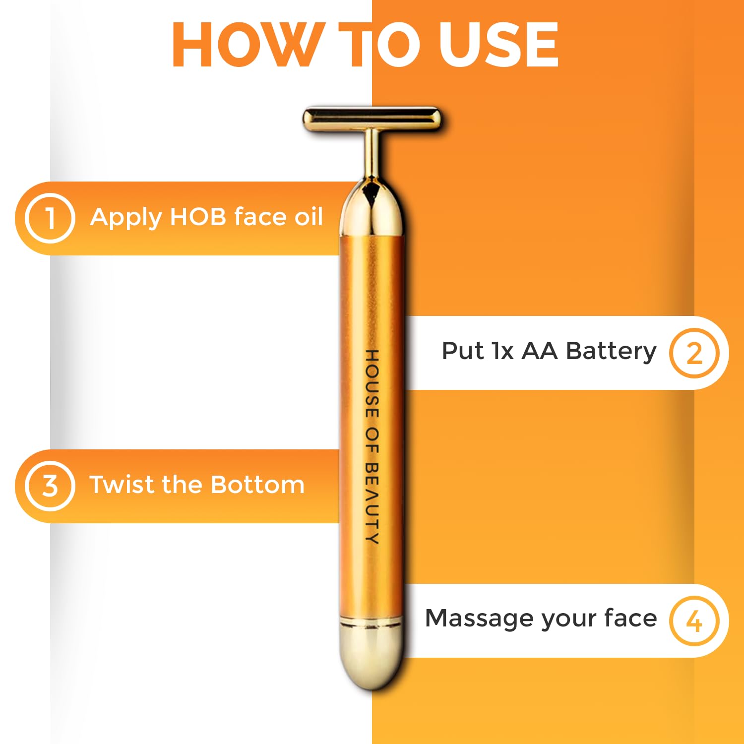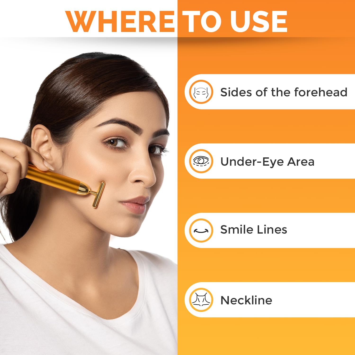 24K Gold Energy Beauty Bar Electric Facial Massage Roller